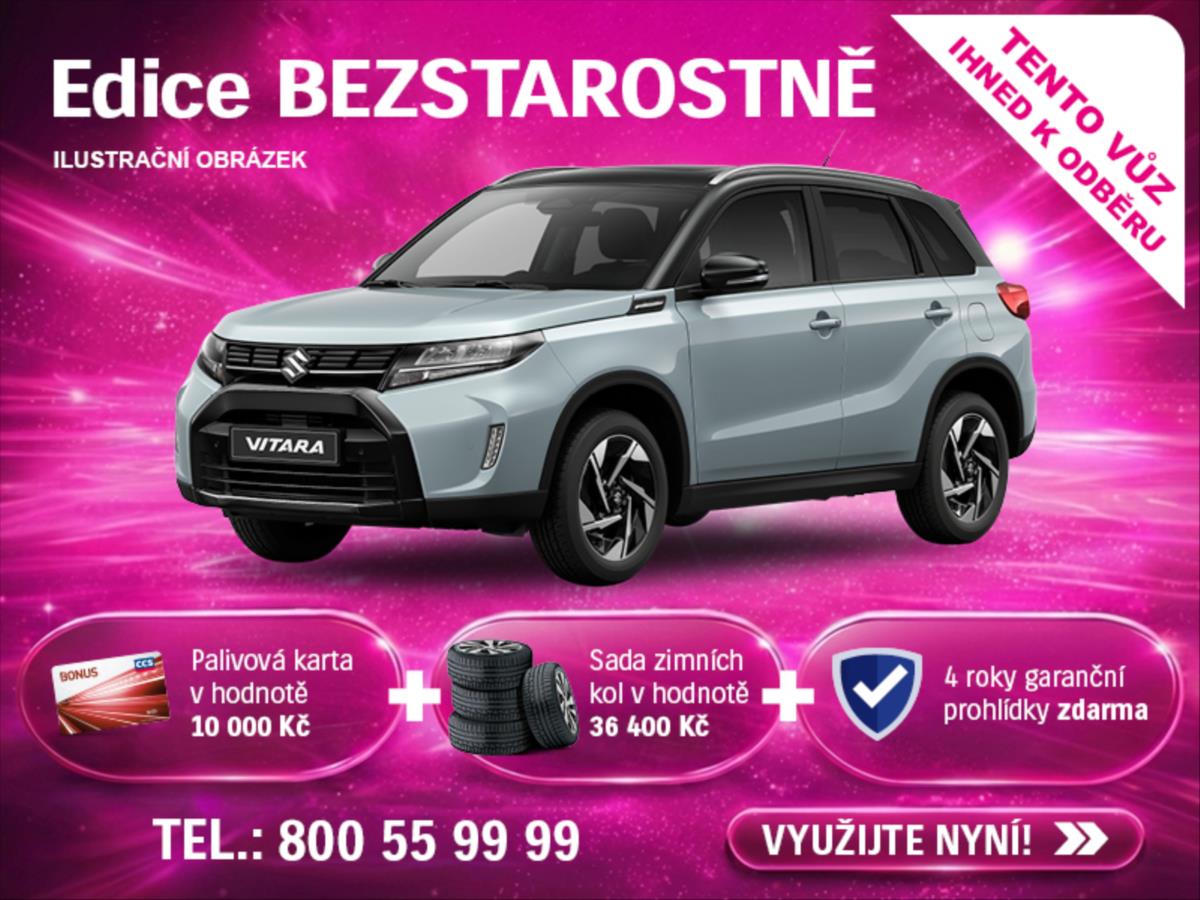 Suzuki Vitara je kompaktní SUV, které vyniká svou všestranností a odolností. Nabízí možnost pohonu všech kol, moderní bezpečnostní technologie a úsporný motor, což zajišťuje výborný výkon na silnici i v terénu. Suzuki Vitara je ideální volbou pro ty, kteří hledají spolehlivost, styl a schopnost zvládnout různé jízdní podmínky.